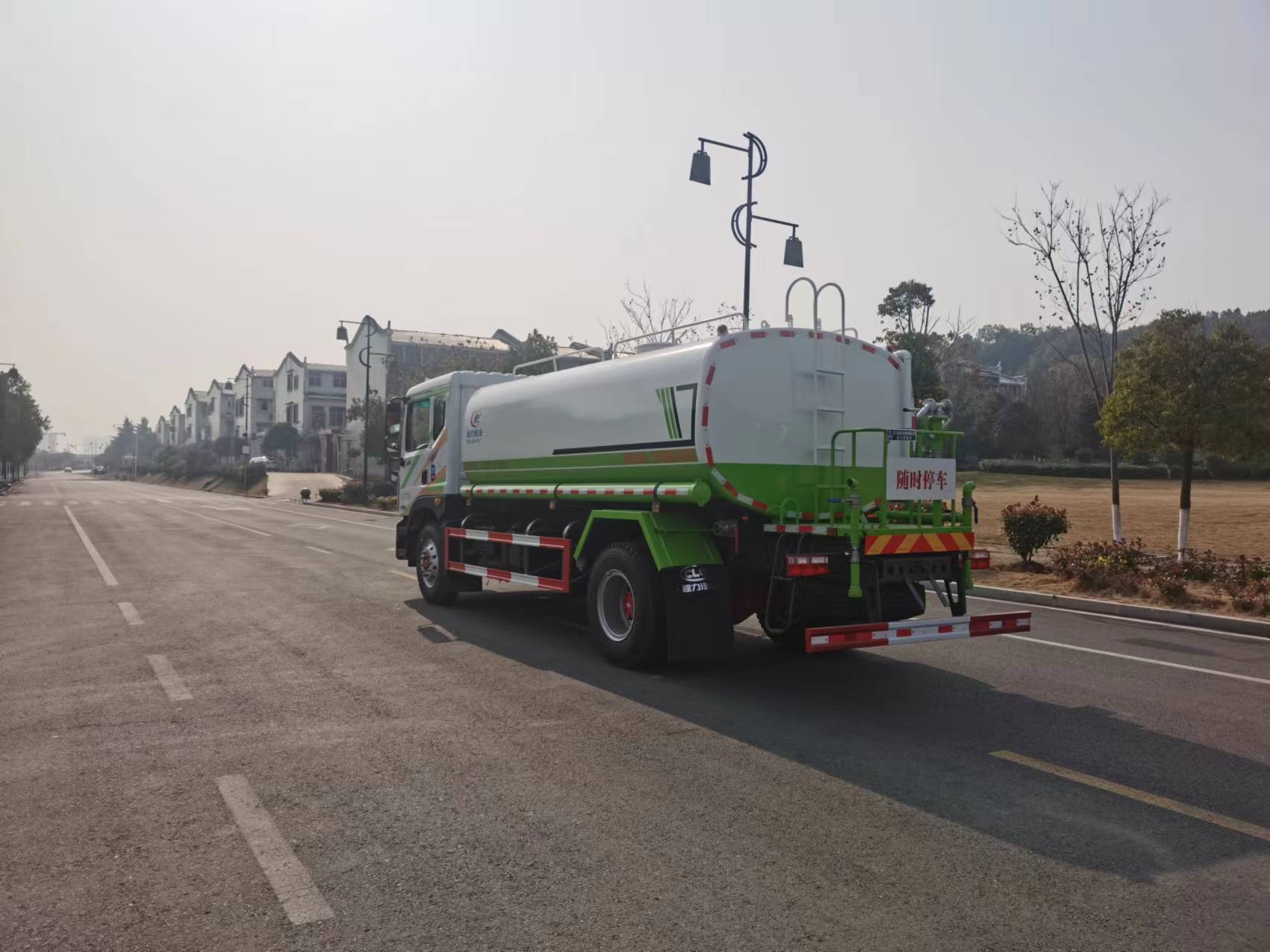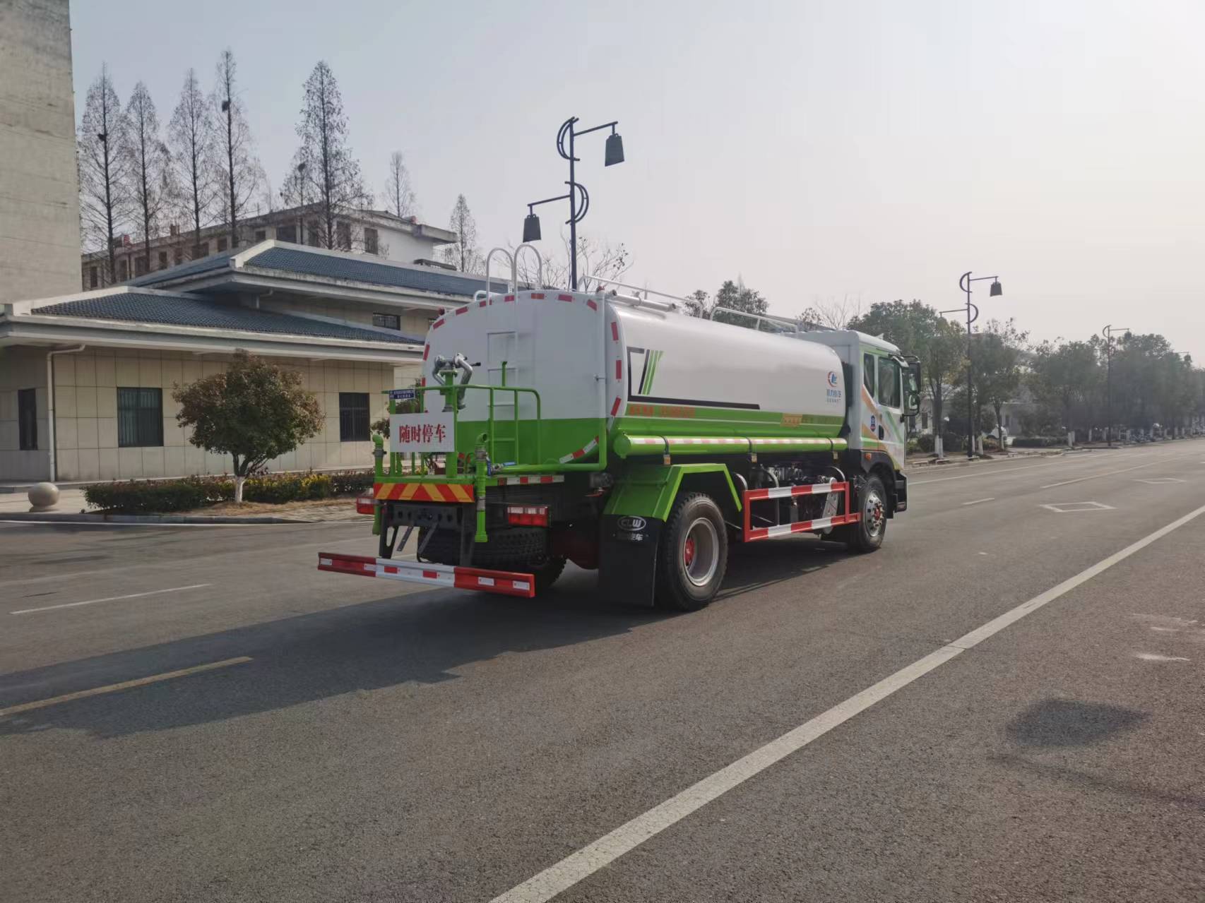 改裝配置:罐體用4MM碳鋼板製作,罐內隔板具有防波作用,以減低汽車行駛時罐體液體的衝擊。整車帶一個專用灑水泵(垂直最大吸程6米),灑水寬度14米,射程28米。多功能灑水車配備2個前衝(噴)(能將路麵泥巴、塵土、垃圾衝幹淨);2個後灑(能均勻地將水灑在路麵,一次灑水寬度14米)、2個側噴(花灑)(能均勻地將路旁綠化帶澆灌)、帶1個後工作平台,平台上安�1個綠化灑水高炮(灑水炮可全方位旋轉,可連續調成直衝狀、大雨、小雨、毛毛雨,霧狀可調節衝洗高大樹木),引水時間<5min,流量90m3/h。帶1個消防接頭,帶1個自流閥,1個過濾裝置、人性化爬梯及側防護欄,安裝灑水音樂喇叭。