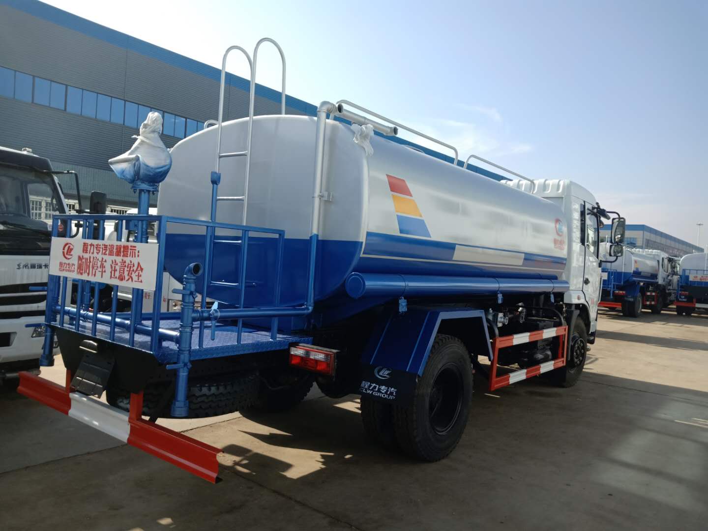 改裝配置:罐體用4MM碳鋼板製作,罐內隔板具有防波作用,以減低汽車行駛時罐體液體的衝擊。整車帶一個專用灑水泵(垂直最大吸程6米),灑水寬度14米,射程28米。多功能灑水車配備2個前衝(噴)(能將路麵泥巴、塵土、垃圾衝幹淨);2個後灑(能均勻地將水灑在路麵,一次灑水寬度14米)、2個側噴(花灑)(能均勻地將路旁綠化帶澆灌)、帶1個後工作平台,平台上安裝1個綠化灑水高炮(灑水炮可全方位旋轉,可連續調成直衝狀、大雨、小雨、毛毛雨,霧狀可調節衝洗高大樹木),引水時間<5min,流量90m3/h。帶1個消防接頭,帶1個自流閥,1個過濾裝置、人性化爬梯及側防護欄,安裝灑水音樂喇叭。