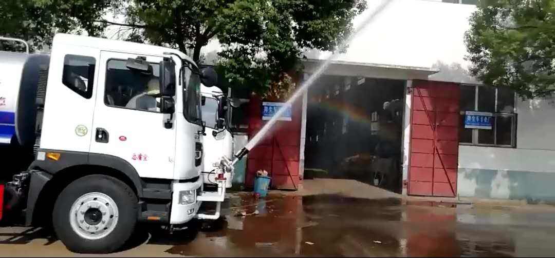 想要達到降塵灑水的效果,不光後麵可以加裝霧炮外,還可以在駕駛室前麵加裝電動灑水炮,在駕駛室內操作,效果很不錯。