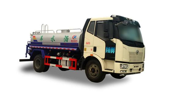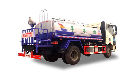 灑水車工作原理:主要由發動機帶動變速箱,變速箱上安裝的取力器帶動灑水泵,灑水泵產生動力,將罐體內部的液體通過管網噴灑出去。