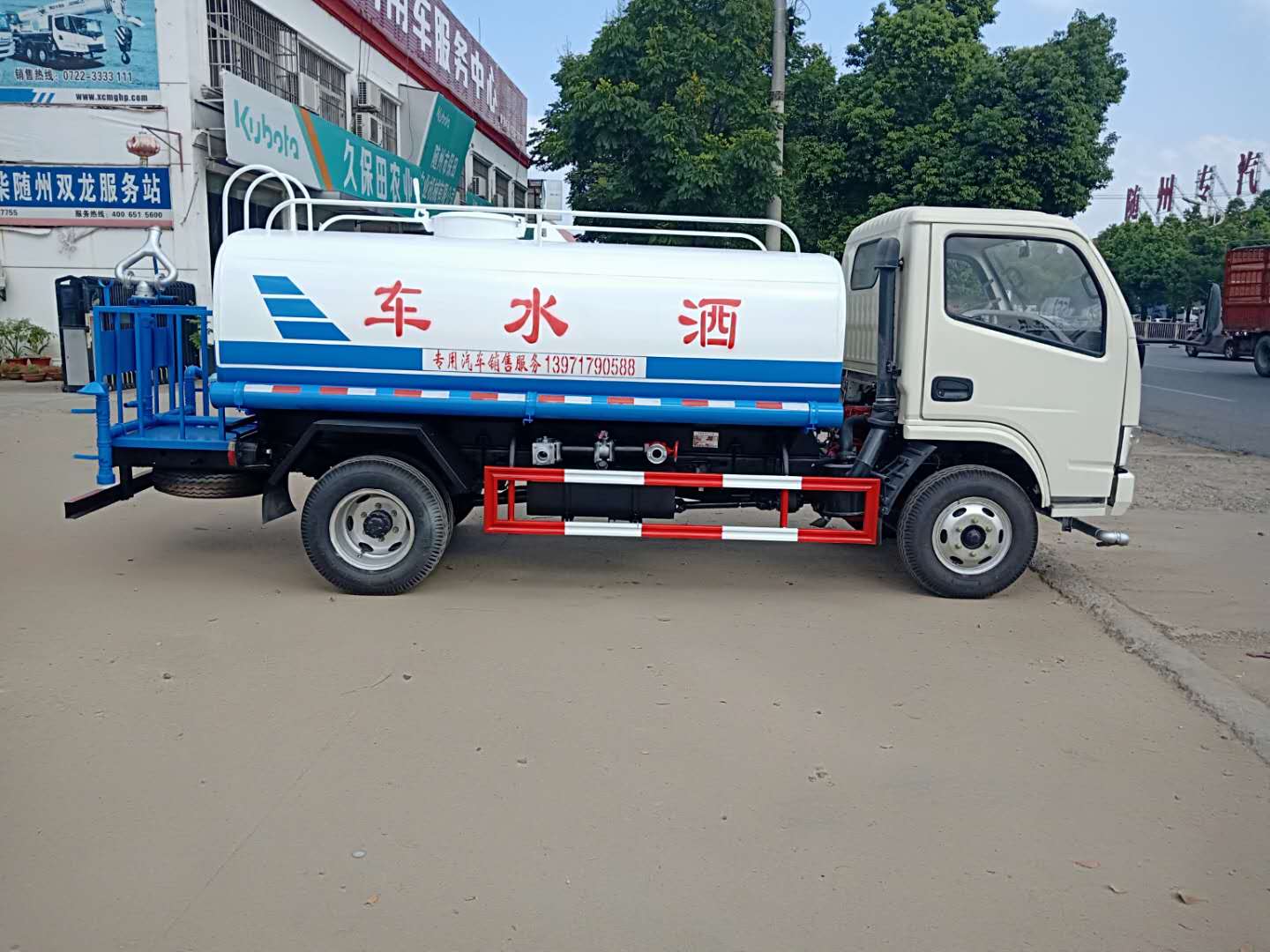 改裝配置:罐體用4MM碳鋼板製作,罐內隔板具有防波作用,以減低汽車行駛時罐體液體的衝擊。整車帶一個專用灑水泵(垂直最大吸程6米),灑水寬度14米,射程28米。多功能灑水車配備2個前衝(噴)(能將路麵泥巴、塵土、垃圾衝幹淨);2個後灑(能均勻地將水灑在路麵,一次灑水寬度14米)、2個側噴(花灑)(能均勻地將路旁綠化帶澆灌)、帶1個後工作平台,平台上安裝1個綠化灑水高炮(灑水炮可全方位旋轉,可連續調成直衝狀、大雨、小雨、毛毛雨,霧狀可調節衝洗高大樹木),引水時間<5min,流量90m3/h。帶1個消防接頭,帶1個自流閥,1個過濾裝置、人性化爬梯及側防護欄,安裝灑水音樂喇叭。