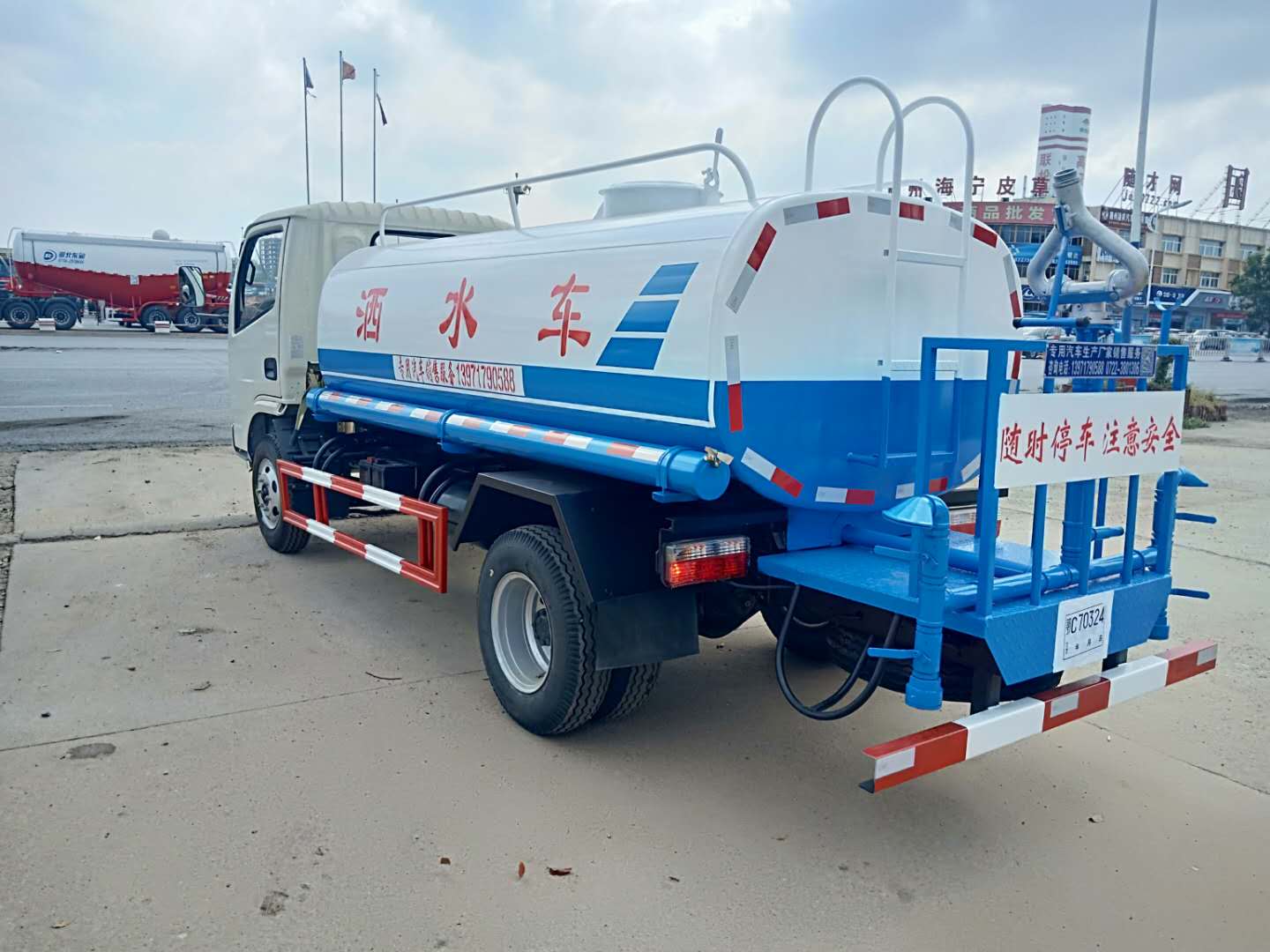 東風5噸灑水車,駕駛室采用東風福瑞卡帶翻轉駕駛室,發動機一汽錫柴87馬力國五柴油發動機,5檔變速箱,700-16尼龍胎,帶方向助力,ABS,氣刹,帶暖風不帶製冷。該車有免征公告,環保已達標。采用武鋼4mm優(you)質(zhi)碳(tan)鋼(gang)板(ban)一(yi)次(ci)卷(juan)壓(ya)成(cheng)型(xing),完(wan)全(quan)做(zuo)到(dao)無(wu)縫(feng)成(cheng)型(xing)。罐(guan)體(ti)內(nei)設(she)多(duo)道(dao)防(fang)波(bo)隔(ge)板(ban),采(cai)用(yong)高(gao)壓(ya)氣(qi)體(ti)試(shi)漏(lou)檢(jian)測(ce),使(shi)罐(guan)體(ti)具(ju)有(you)強(qiang)度(du)高(gao),重(zhong)心(xin)穩(wen),車(che)輛(liang)運(yun)載(zai)安(an)全(quan)平(ping)穩(wen)。罐(guan)體(ti)及(ji)保(bao)險(xian)杠(gang)貼(tie)紅(hong)白(bai)色(se)反(fan)光(guang)條(tiao),罐(guan)體(ti)兩(liang)側(ce)噴(pen)“灑水車”字樣(可按客戶指定要求噴繪字樣),罐體顏色可選擇上白下藍或銀灰銀藍。