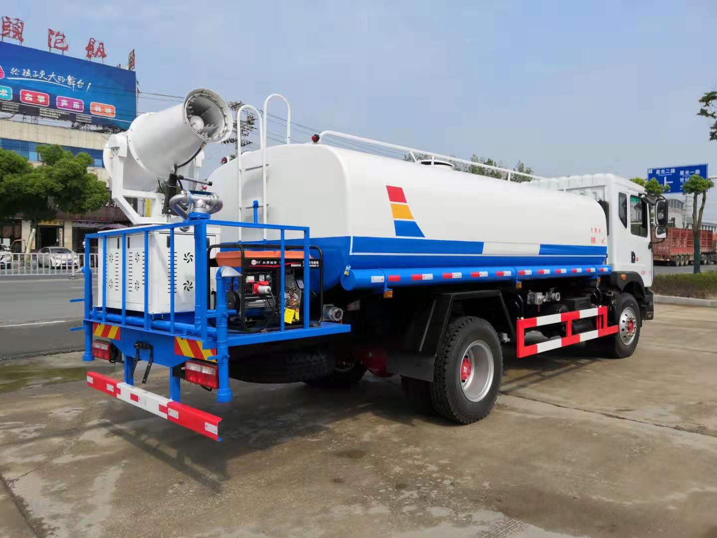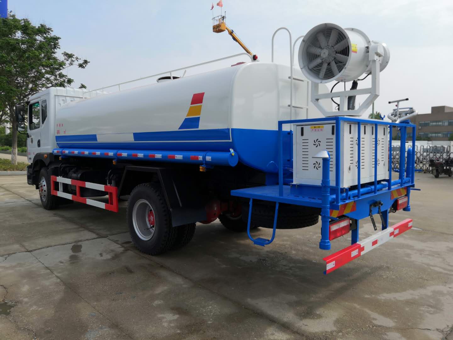 東風D9多利卡消毒霧炮車容積14立方。該車采用東風D9多利卡豪華駕駛室,東風康明斯180馬力發動機,10.00R20鋼絲龍胎,斷氣刹,帶方向助力,罐體外形尺寸(長度×長軸×軸)(mm):4000×2400×1650。塵車集綠化灑水和抑塵功能於一身,采用新型的風進式噴霧方式是一種高射程,高效率,機動性好的新一代植保機械,配有噴霧裝置,可上下左右移動。更多詳細價格可電話谘詢!