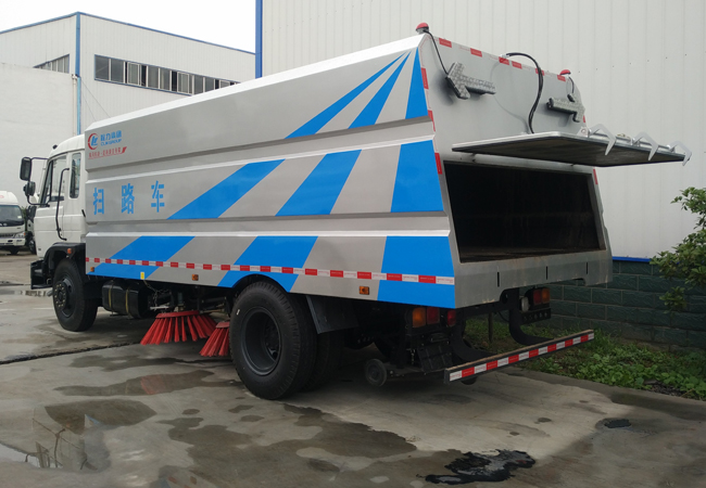 掃路車標準配置:水箱容積:4立方,垃圾箱容積:7立方;帶掃盤4把,掃盤轉速實現獨立3檔調速;康明斯140馬力副發動機;大力或三洋;馬達;施耐德控件開關;台灣液壓閥或海普瑞斯電磁閥組;長源液壓油泵;新西山水泵;免維護自分離式離合器;免維護風機;不鏽鋼垃圾箱;尾部LED箭頭燈;手動泵應急係統;前掃刷臂轉動機構使用高新耐磨工程隔套,免打黃油;精密冷彎無縫液壓油管。清掃寬度:2.8--3.2米,清掃速度:3-20km/h,最大吸入粒度:120mm,最大清掃能力:50000 m2/h。