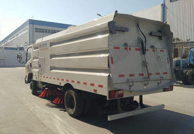 江鈴掃路車底盤配置:單排可翻轉駕駛室底盤,江鈴152馬力國五柴油機遙控中控鎖,六檔孌速箱,斷氣刹,700鋼絲胎,帶空調,方向助力,前橋2噸,後橋3.5噸,帶排氣製動,原廠ABS。