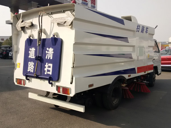 掃路車標準配置:水箱容積:2立方,垃圾箱容積:7立方;帶掃盤4把,掃盤轉速實現獨立3檔調速;江鈴78馬力副發動機;大力或三洋馬達;施耐德控件開關;液壓閥;長源液壓油泵;新西山水泵;免維護自分離式離合器;免維護風機;不鏽鋼垃圾箱;尾部LED箭頭燈;手動泵應急係統;前掃刷臂轉動機構使用高新耐磨工程隔套,免打黃油;精密冷彎無縫液壓油管。清掃寬度:2.8--3.2米,清掃速度:3-20km/h,最大吸入粒度:120mm,最大清掃能力:50000 m2/h。