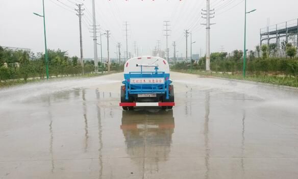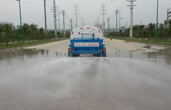 東風多利卡5噸灑水車  配置:四達發動機SD4BW754U,功率75千瓦,軸距3300,188mm等截麵車架,前橋1.8噸,後橋3,5噸,7.00輪胎,12伏蓄電池,動力轉向,氣刹,5檔變速箱。